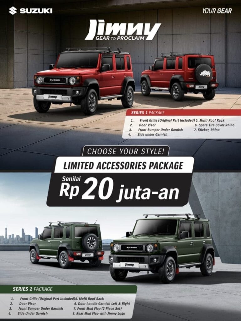 Jika kamu sudah lama mengincar Suzuki Jimny 5 Doors, sekarang adalah momen tepat untuk meminangnya dengan paket aksesori yang bikin iri pengguna lain. Promo ini terbatas, jadi jangan sampai kehabisan!